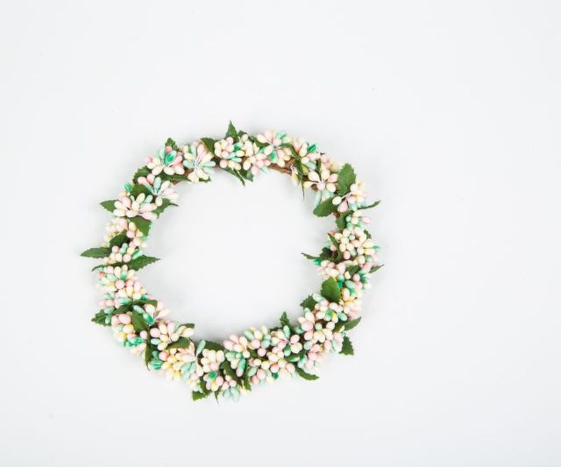 LARGE RICE BERRY CANDLE RING, 5 IN RIM, HW, LIGHT TEAL, LIGHT YELLOW, LIGHT PINK