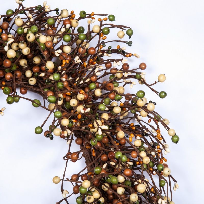 MIXED BERRY WREATH SET, SET OF 2, HW, 19INDIA (10INDIA RIM) & 12INDIA (4INDIA RIM), MATTE FINISH, BROWN/CREAM/GREEN
